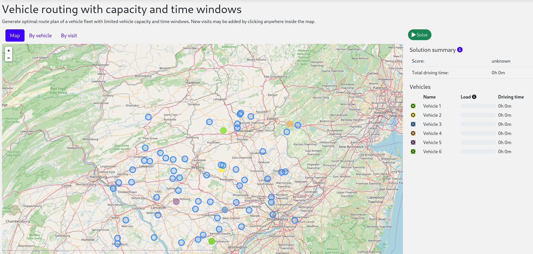 Mathematically speaking, VRP is an NP-hard problem. This means it is difficult to scale. Simply brute force iterating through all possible combinations takes millions of years for a non-trivial dataset, even on a supercomputer. Luckily, AI constraint solvers such as Timefold Solver have advanced algorithms that deliver a near-optimal solution in a reasonable amount of time.